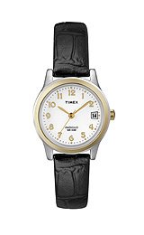 Timex Women's T2N252 Analog Bi-Metal Case Black Leather Strap Dress Watch